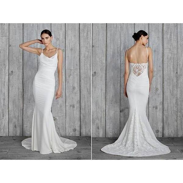 Nicole Miller Hampton Lace Back Gown Antique White Wedding Dresses