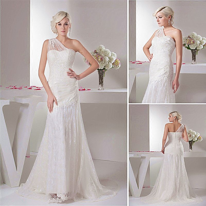 Ever Pretty One Shoulder Wedding Gown Lace Split Bridesmaid