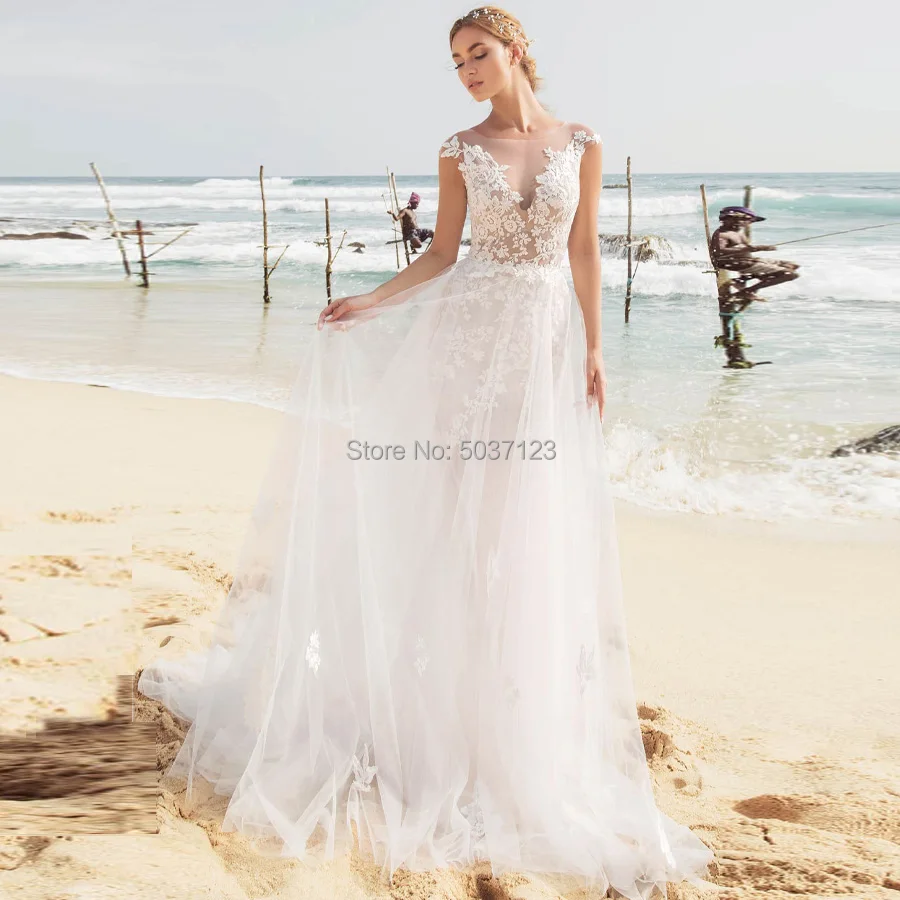 Chiffon Lace Wedding Dresses Open Back Beach Wedding Dresses