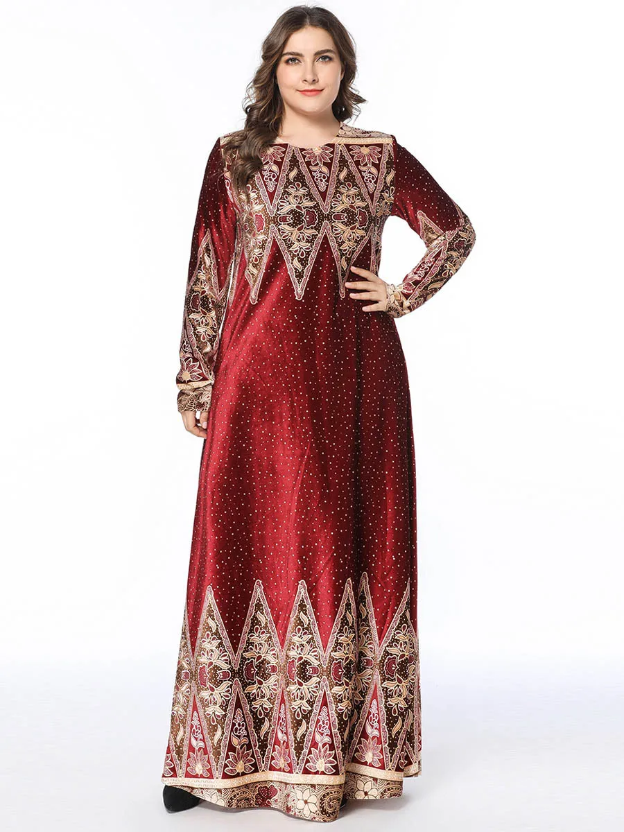 Winter Dress Women Long Sleeve Abaya Muslim Velvet Dress Plus Size