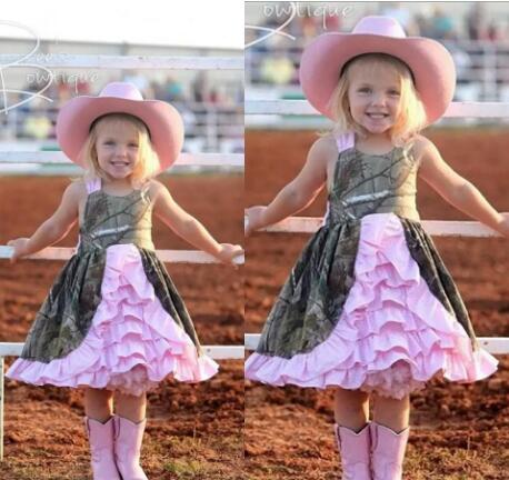 Cheap Flowers Girls Dress Short Camo Whit Pink Satin Cute Dress