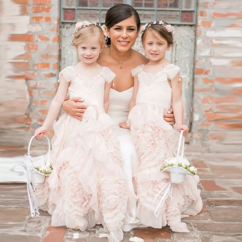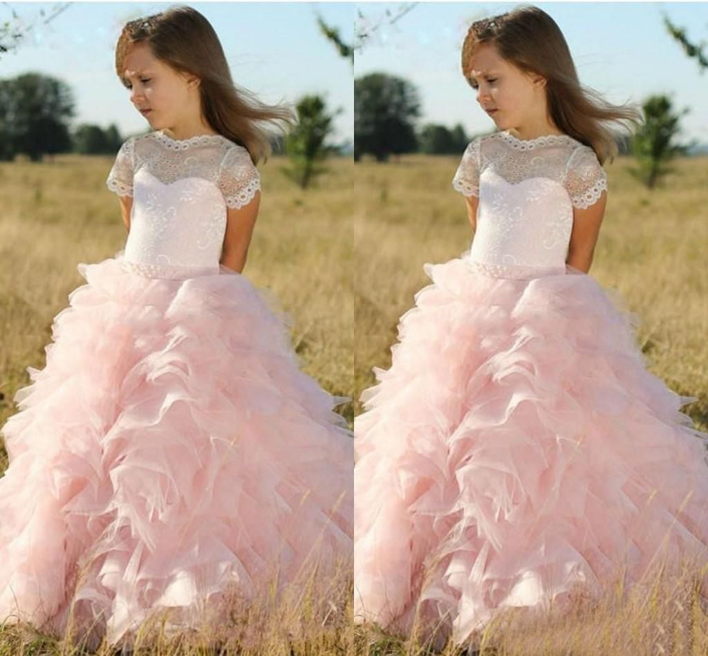 Cheap Pink Flower Girls Dresses For Wedding Lace Applique Ruffles