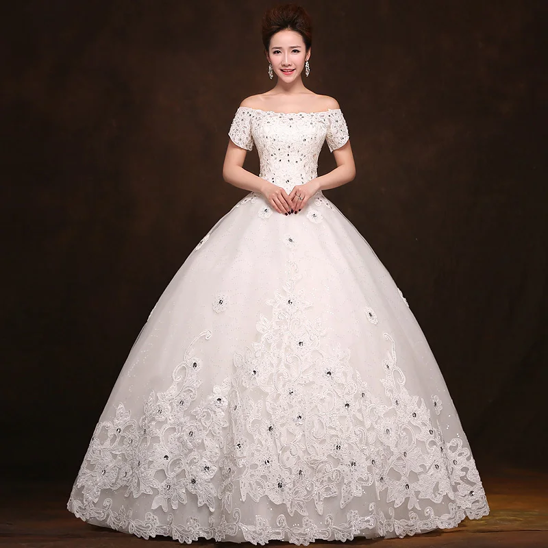 New Brand Ball Gown Fairy Strapless Short Sleeve Bride Wedding
