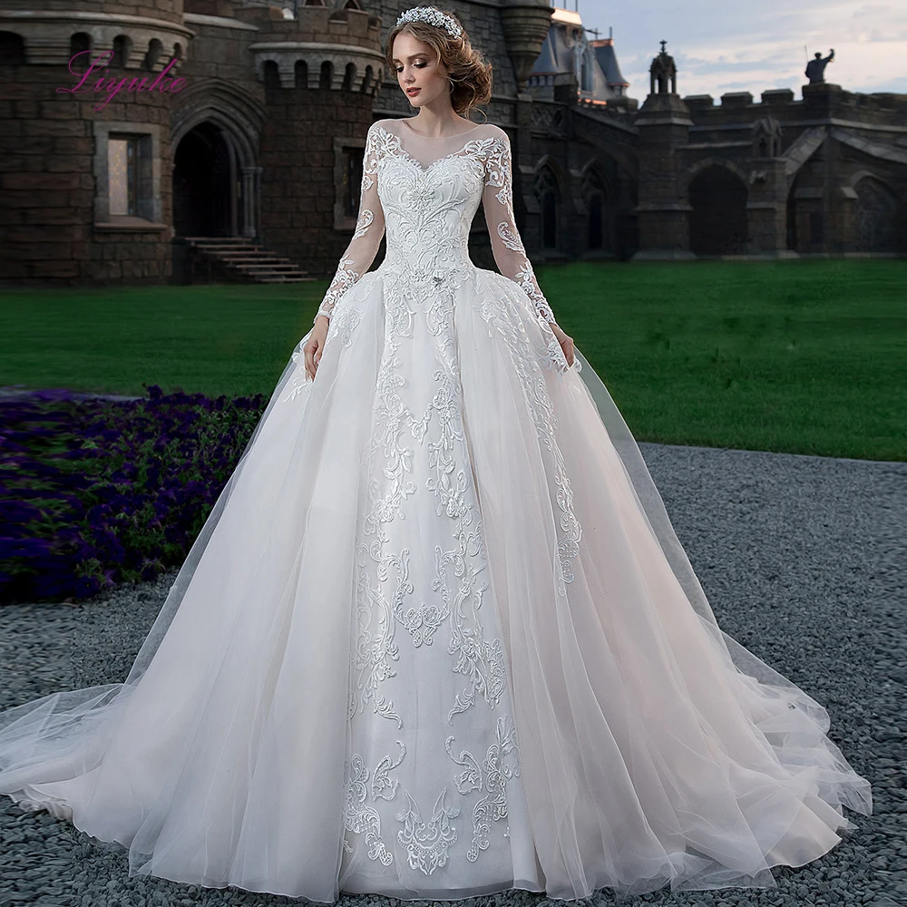 Beautiful Lace Long Sleeve Princess Wedding Dresses 2018 Ball Gown