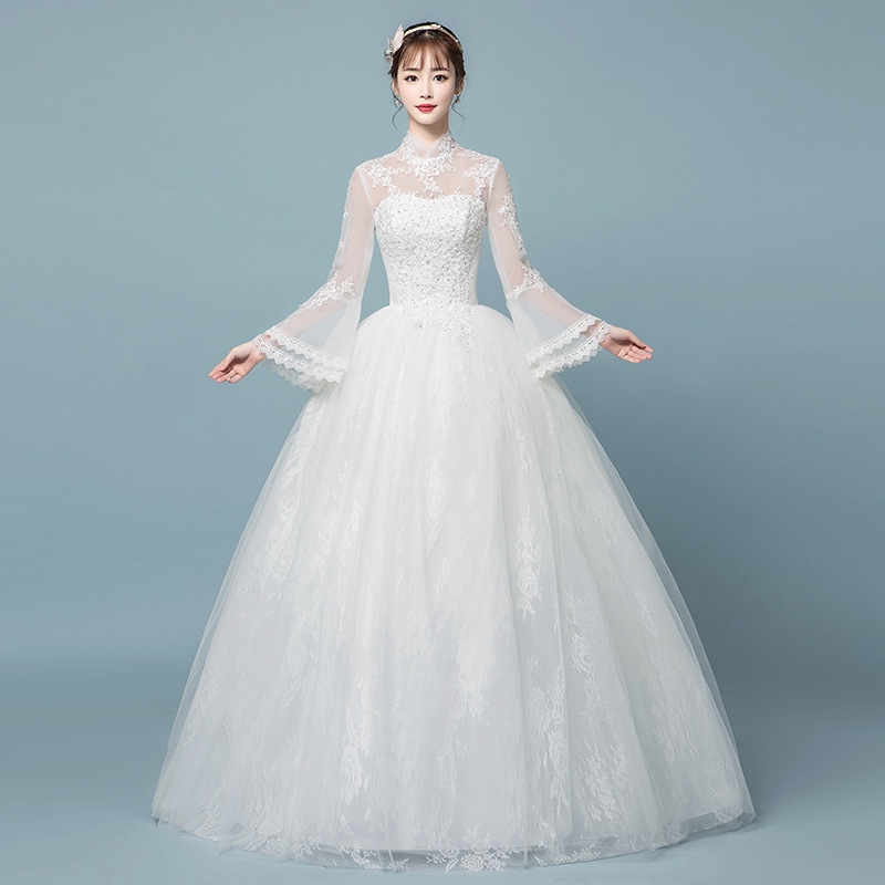 Wedding Dress High Neck Princess Lace Bride Dress Dinner Maxi