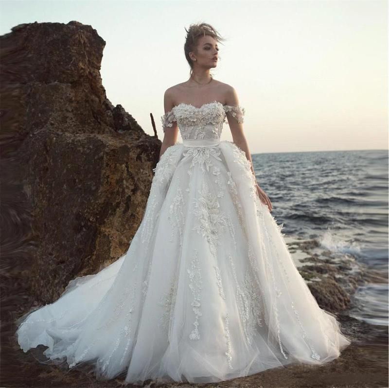 Discount Romantic Ivory Off Shoulders Lace Appliqued Wedding