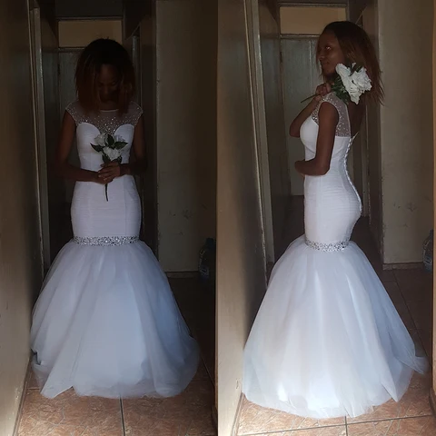 Plus Size Vestidos Fansmile 2018 New Short Sleeve Mermaid Wedding