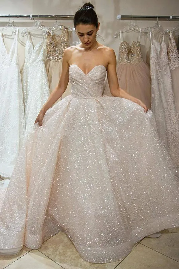 Gorgeous Sparkly Wedding Dresses 2019 Sweetheart Pleats A Line