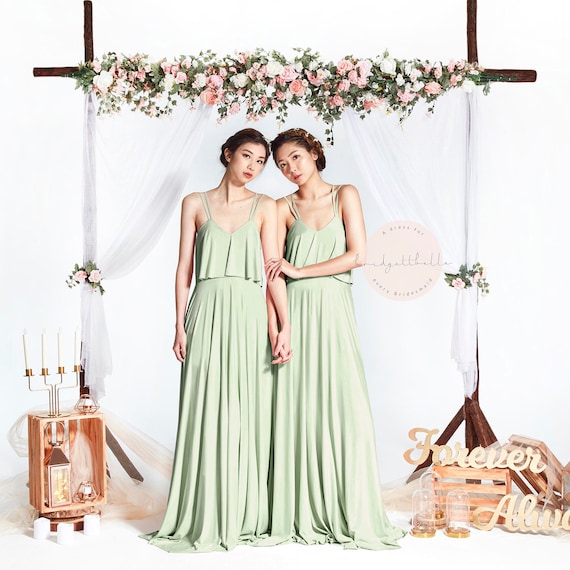 Bb Cadee In Sage Green Strappy Floor Length Convertible Boho Etsy