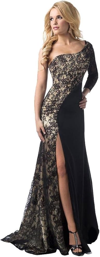 One Shoulder Dresses Women Lace Splice Slit Long Dress Summer