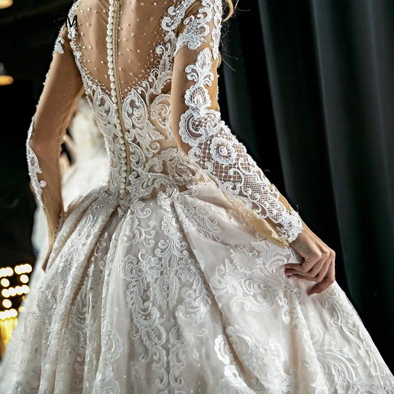 Vintage Lace Appliques Princess Arabic Ball Gown Wedding Dresses
