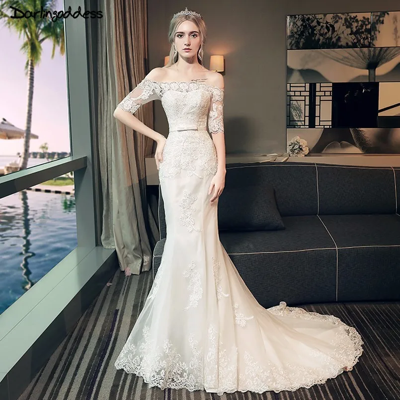 Robe De Mariage 2018 Lace Mermaid Wedding Dresses Short Sleeve Off