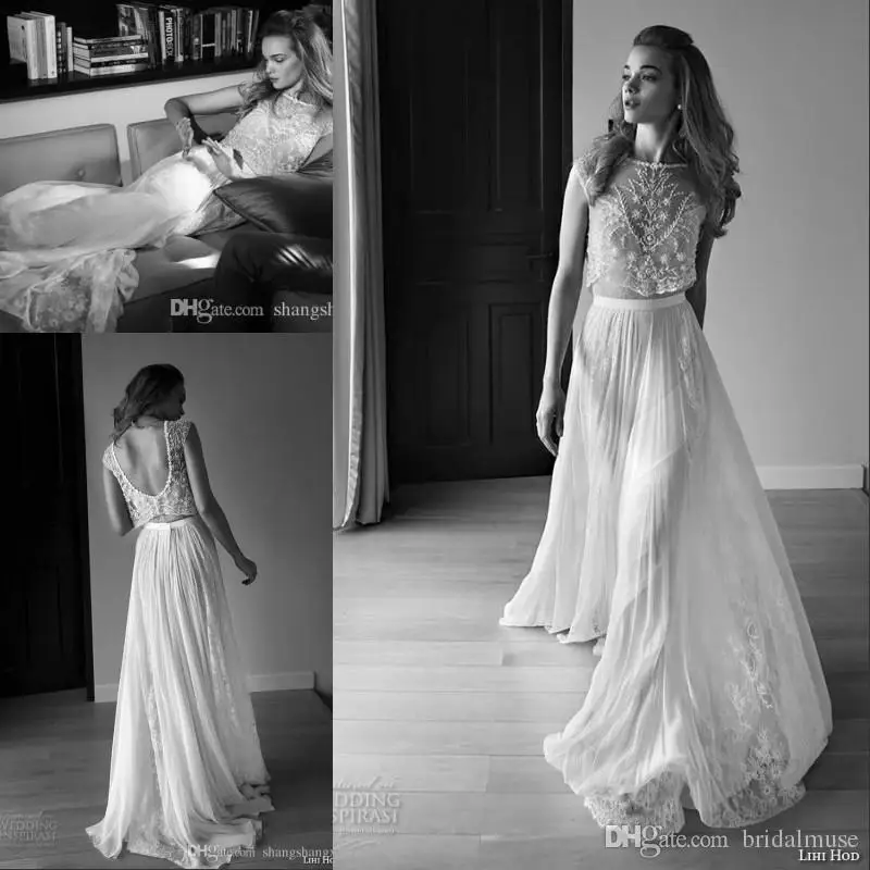Discount Country Boho Wedding Dress Lace Chiffon Floor Length