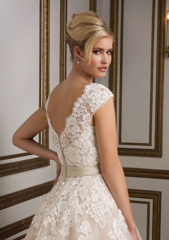 Style 8815 Vintage Inspired Champagne Tulle Tea Length Bridal