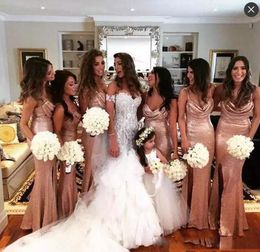 Shiny Rose Gold Champagne Sequin Bead Bridesmaid Dress Mermaid V