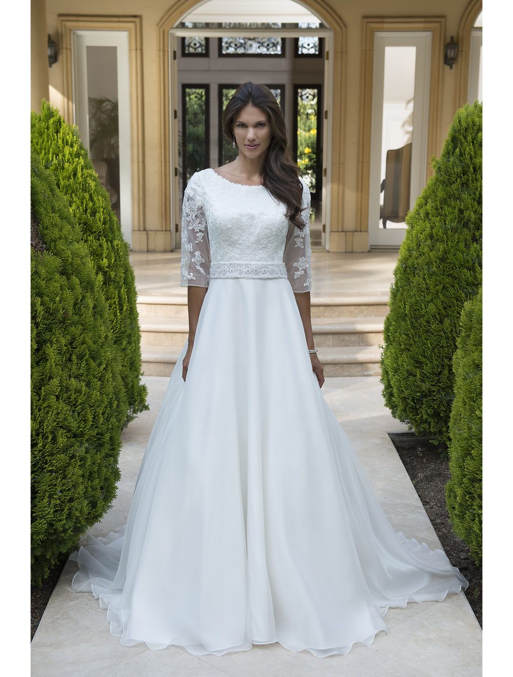 Discount Long A Line Chiffon Modest Wedding Dresses With Sheer
