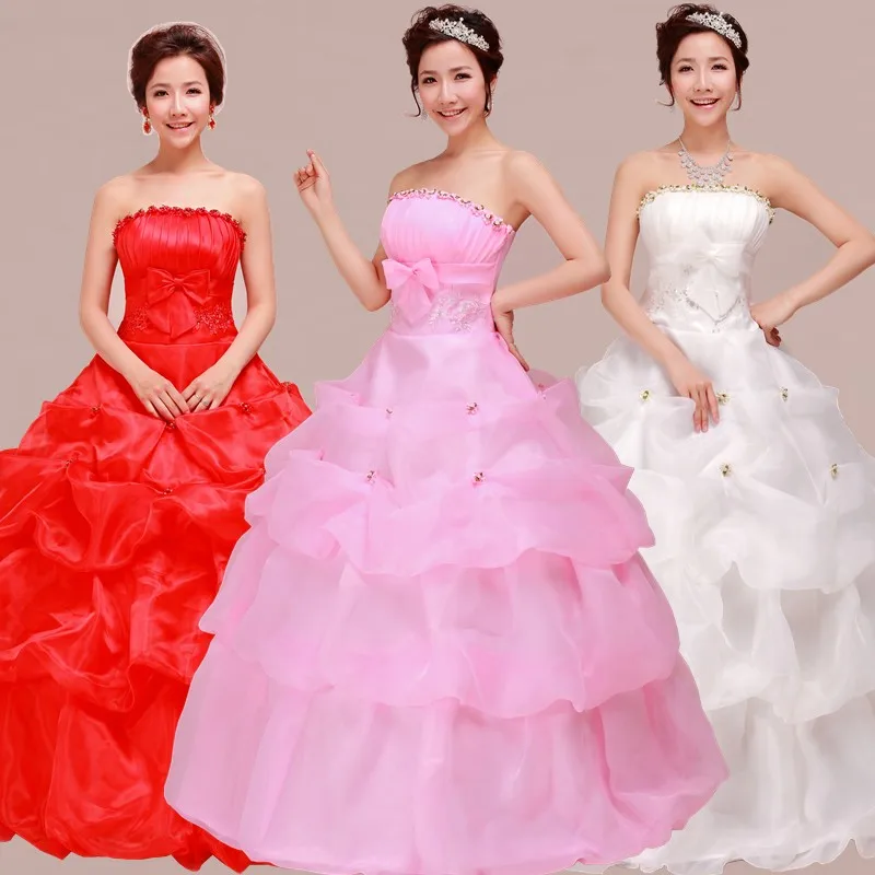 Holievery Strapless Ball Gown Wedding Dresses With Ruffles 2019