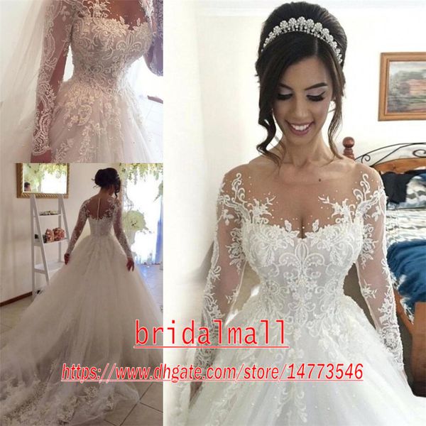 Discount Plus Size 2020 Sheer Long Sleeves Wedding Dresses Elegant