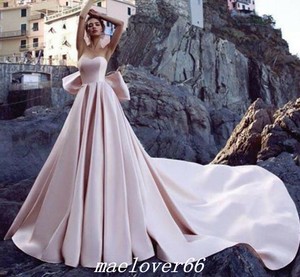 Vintage Blush Pink Big Bow Satin Wedding Dresses Princess Romantic