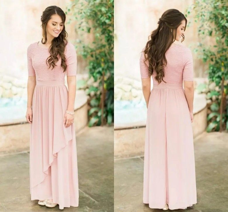 Modest Long Bridesmaid Dresses 2019 Half Sleeves Lace Chiffon