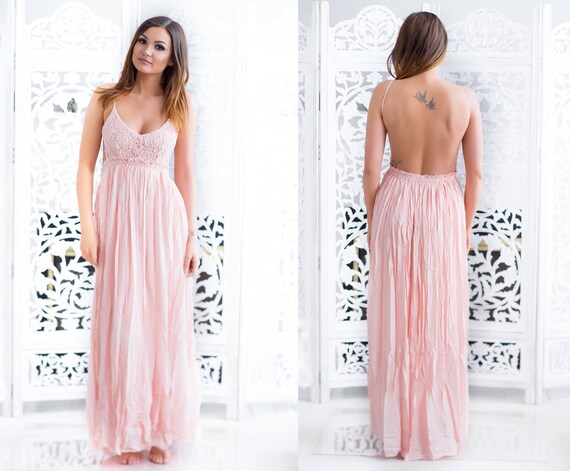 Peach Pink Lace Dress Maxi Long Evening Wedding Cocktail Prom Etsy