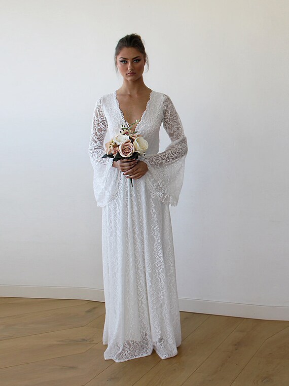 Long Sleeves Wedding Lace Dress Lace Bell Sleeves Bohemian Etsy