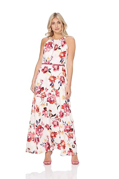 Roman Originals Womens Floral Belted Maxi Dress Ladies Summer