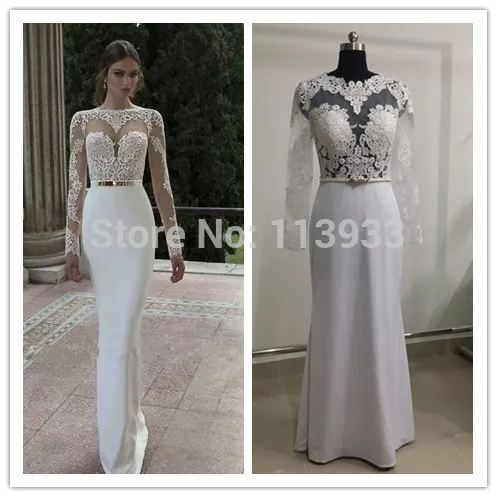 2017 White Lace 2 Piece Wedding Dress Long Sleeve Detachable Satin
