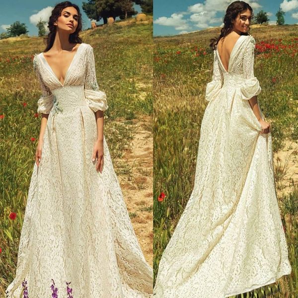Bohemian Wedding Dress 2019 Sleeveless V Neck Lace Open Back