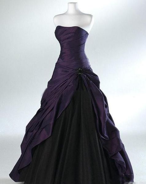 Plus Size Purple And Black Ball Gown Gothic Wedding Dresses For