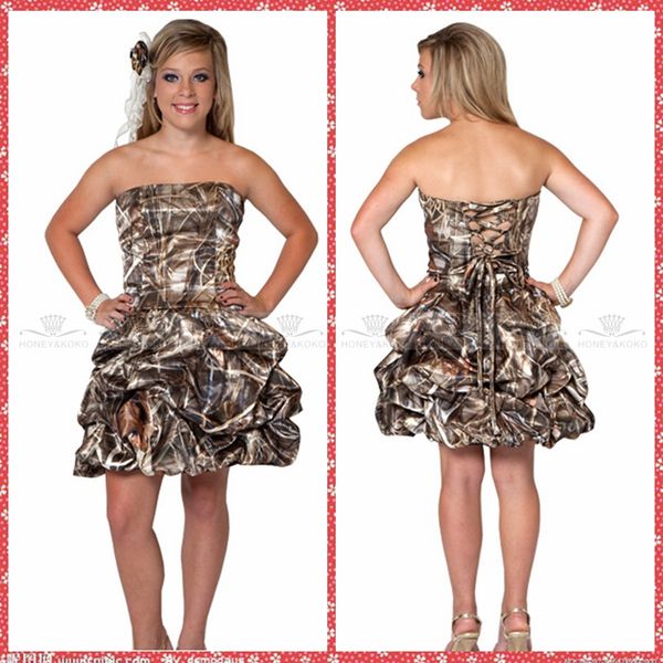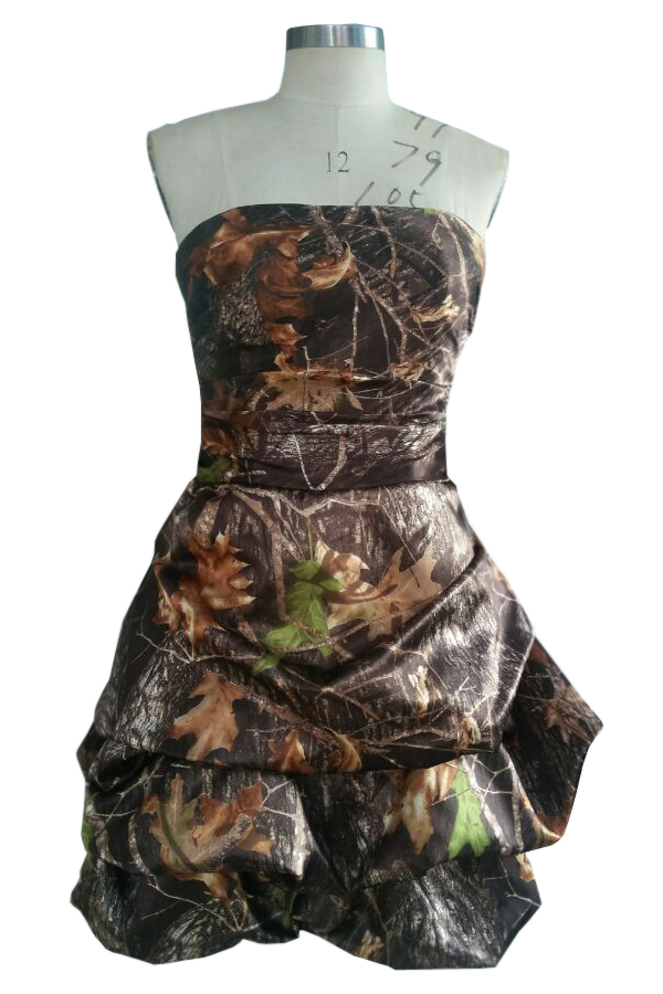 Camo Prom Dress Short Camo Wedding Dress Strapless Mini Camo