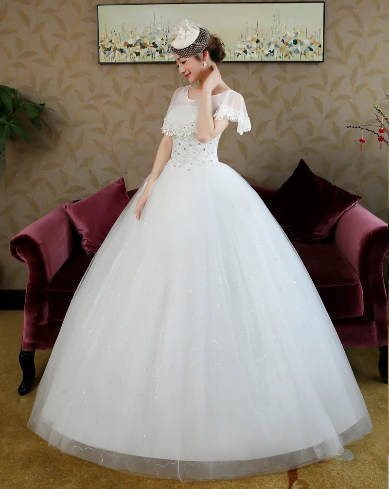 New Design O Neck Cap Sleeve Wedding Dress Plus Size Bridal Gown