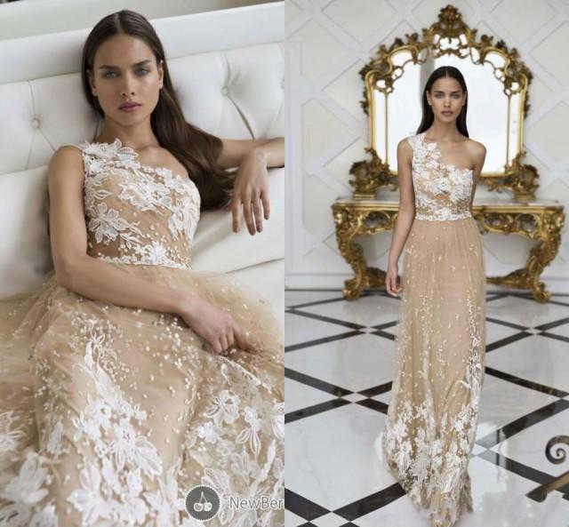 Light Champagne Lace And Tulle Boho Wedding Dress Wedding
