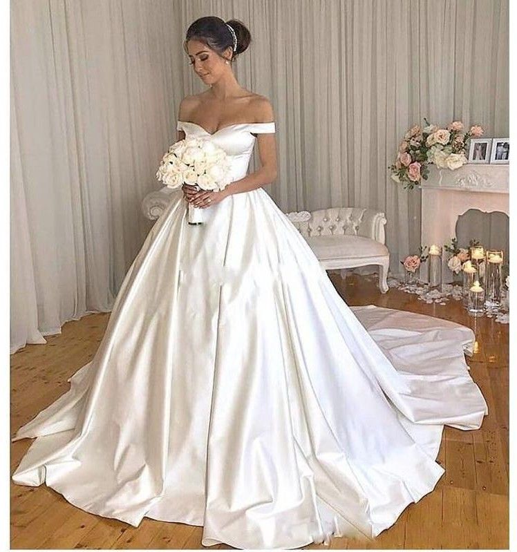 2019 Simple Off The Shoulder Ball Gown Satin Wedding Dresses Back