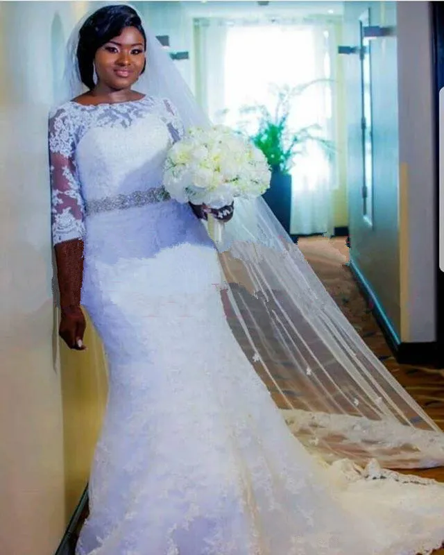 2019 South Africa Mermaid Wedding Dresses 3 4 Sleeve Bateau Neck