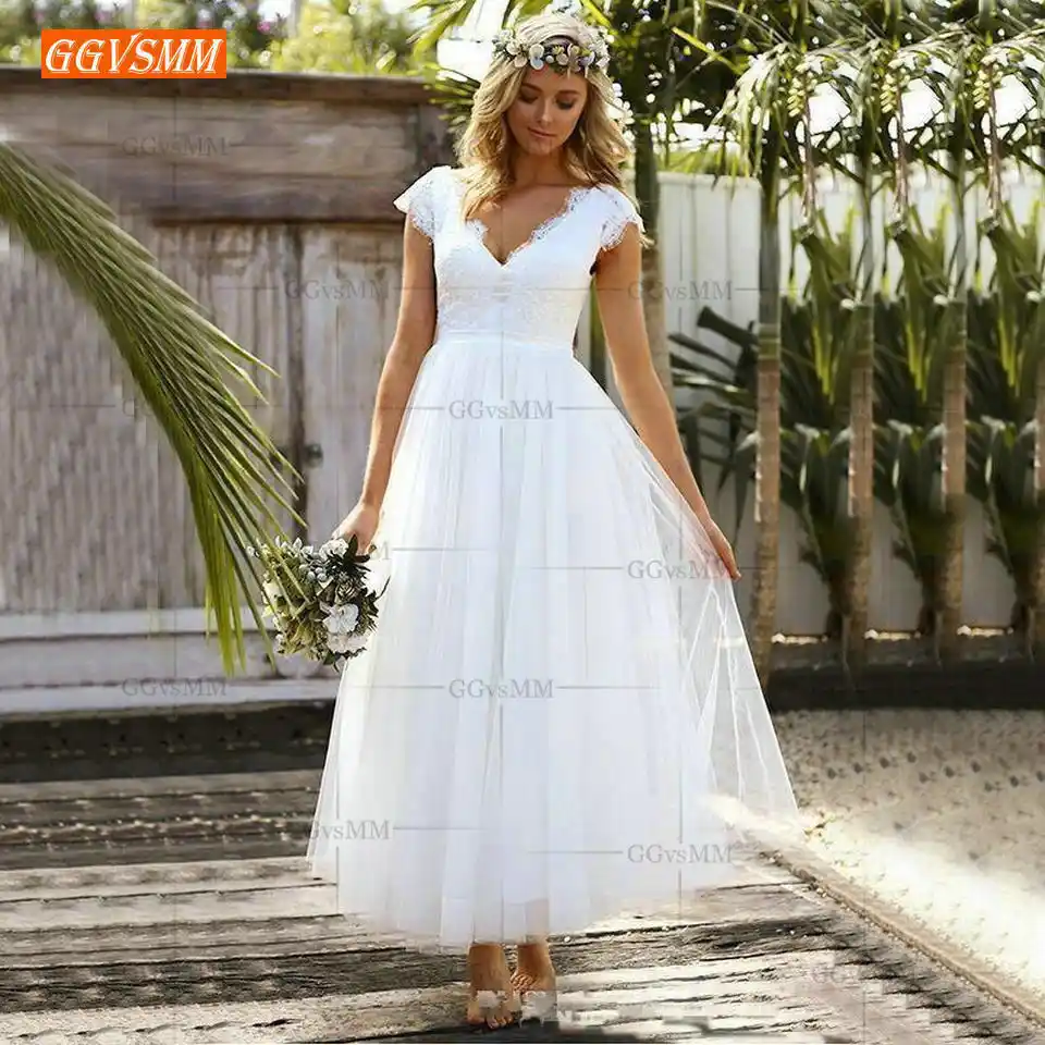 Elegant Boho Women White Wedding Gowns 2019 Wedding Dress Party