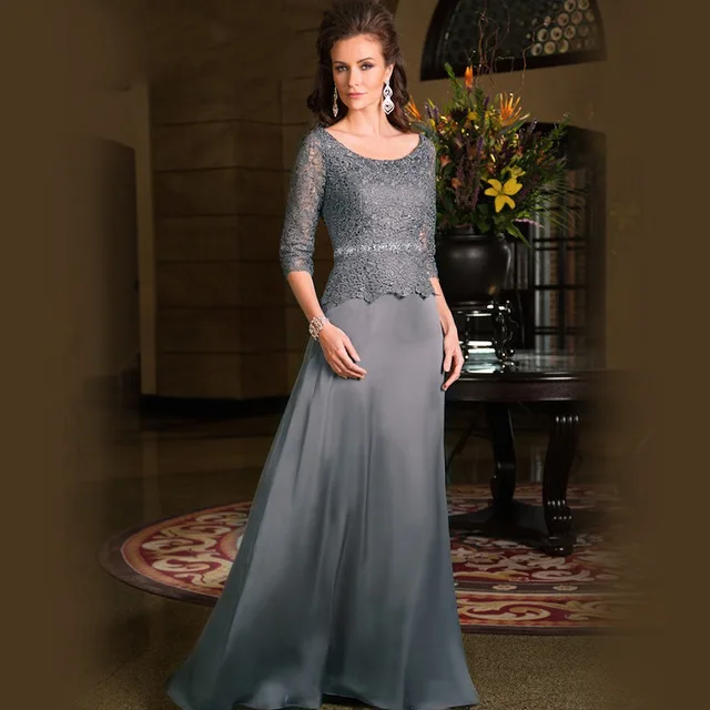 Vestido Mae Da Noiva Plus Size Mother Dress Lace Gray Evening