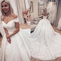 Glamorous Off The Shoulder Flower Ball Gown Wedding Dresses