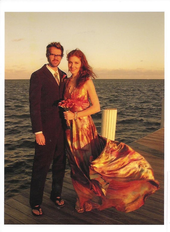 Orange Yellow Gold Red Silk Satin Halter Wedding Dress Mother Etsy