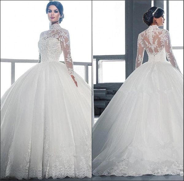 High Neck Lace Ball Gown Wedding Dresses 2018 Vintage Royal Long