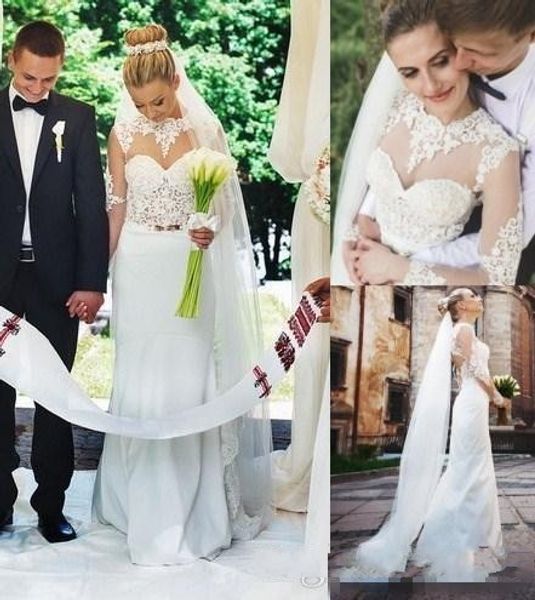Satin Sheath Illusion Neckline Wedding Dress Wedding Dress