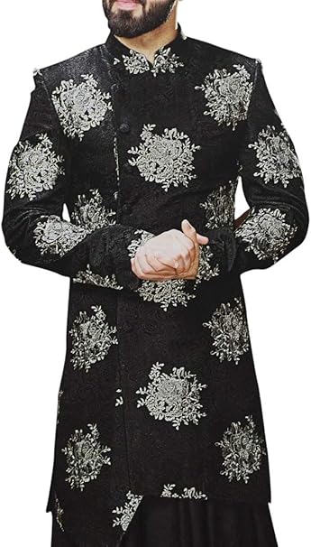 Inmonarch Black Sherwani For Men Indian Wedding Embroidered Dress