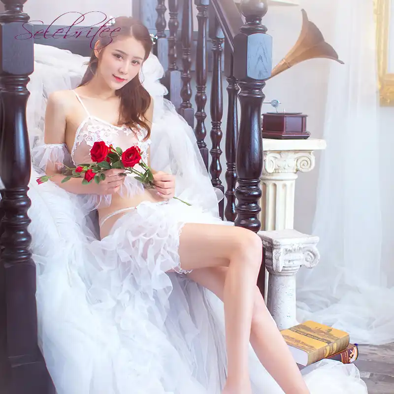 Selebritee Women Costume Bridal Dress With Veil Lingerie Sexy