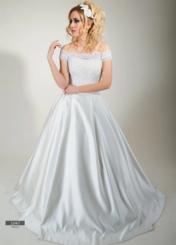 Wedding Dress Boat Neck Lace Body Satin Taffeta Buy Satin
