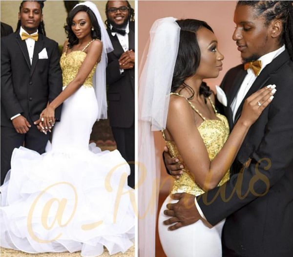 2019 Vintage Mermaid Wedding Dresses Beach Gold Lace Bridal Dress