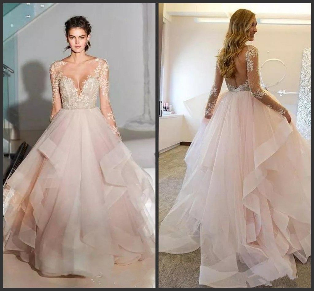 2019 New Sexy Spring Ball Gown Blush Wedding Dresses With Long