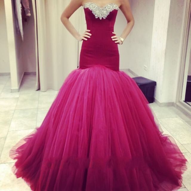 Mermaid Wedding Dress Burgundy Wedding Dress Rhinestones Wedding