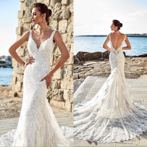 Summer Beach Mermaid Wedding Dresses 2019 V Neck Full Lace Chapel