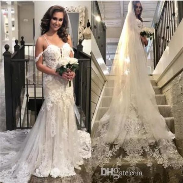 2019 Saghetti Straps Mermaid Wedding Dresses Lace Appliques Long