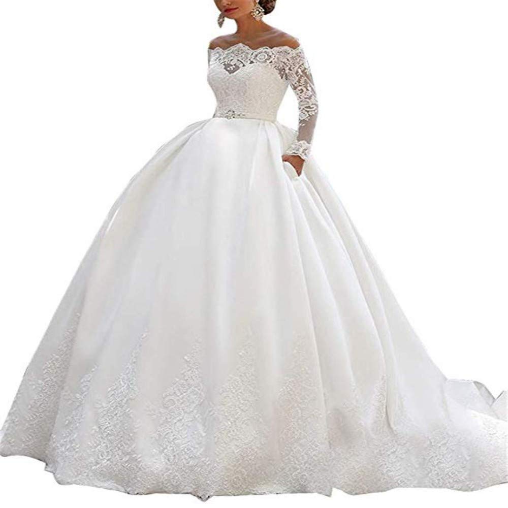 Lace Off Shoulder Ball Gowns Long Sleeves Wedding Dresses Alinanova